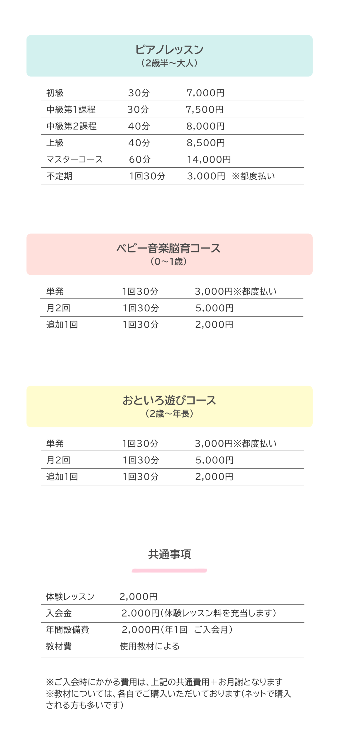 ※0〜1歳のお子様には「ベビー音楽脳育コース」をご案内しています。